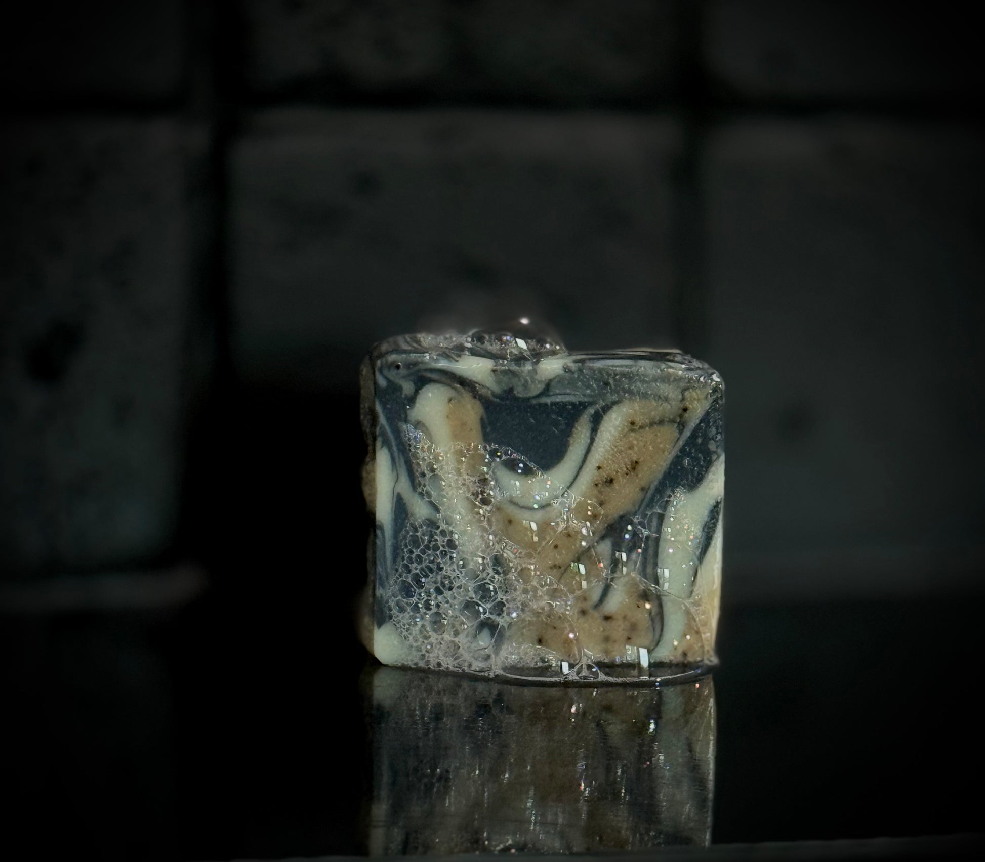INGREDIENTS Olive Oil, Coconut Oil, Cocoa Butter, Castor Oil, Sugar, Activated Charcoal, Ground Coffee,