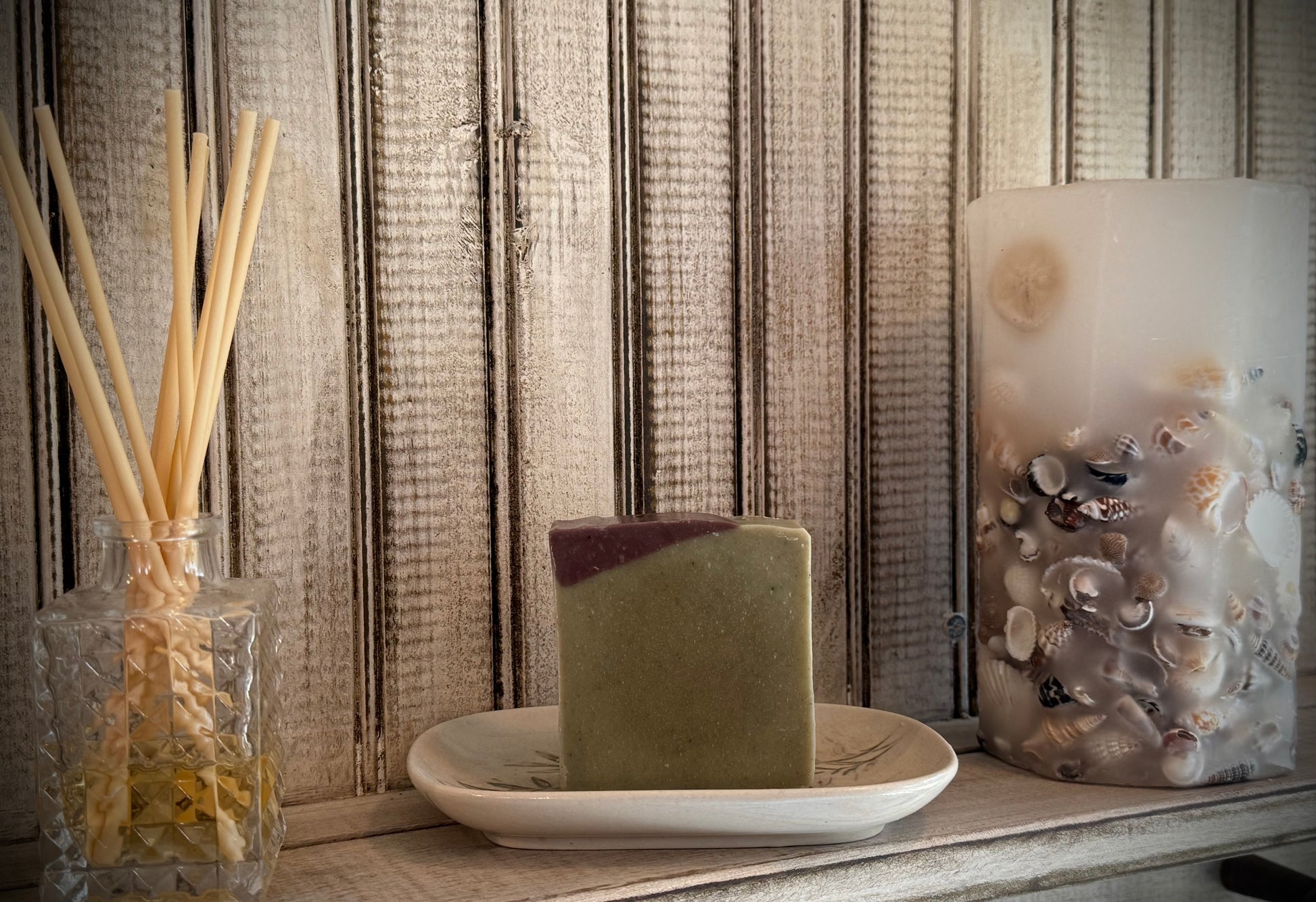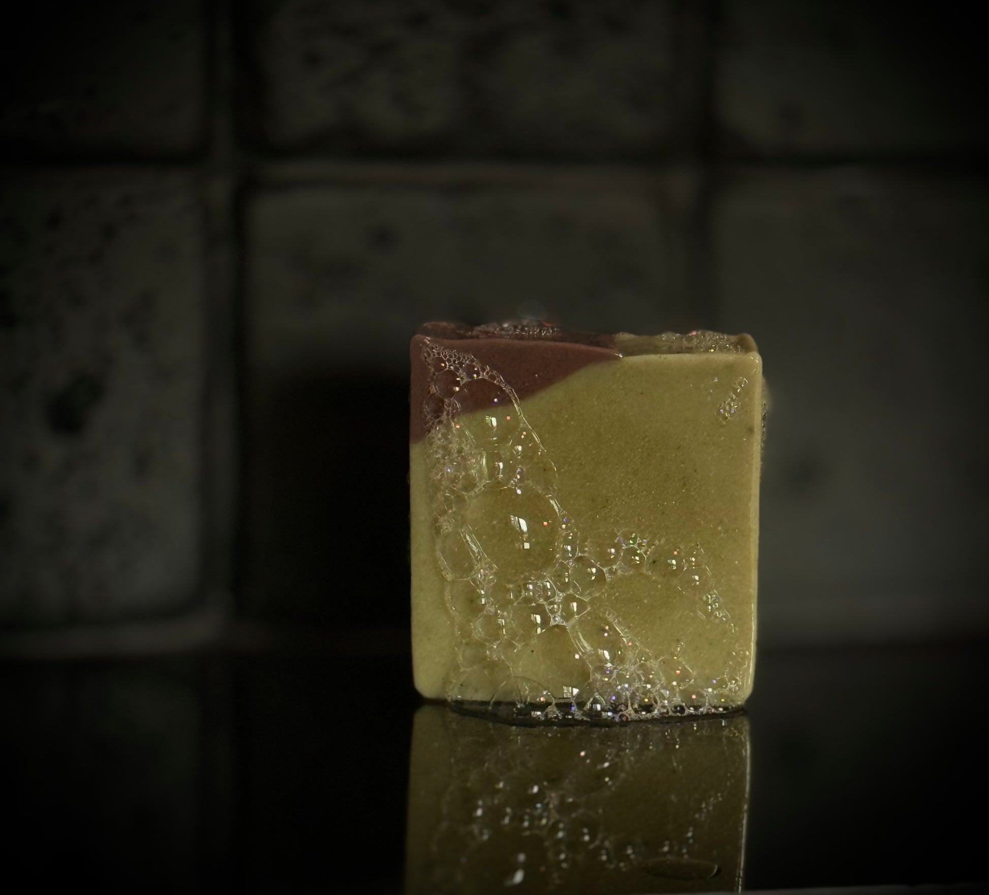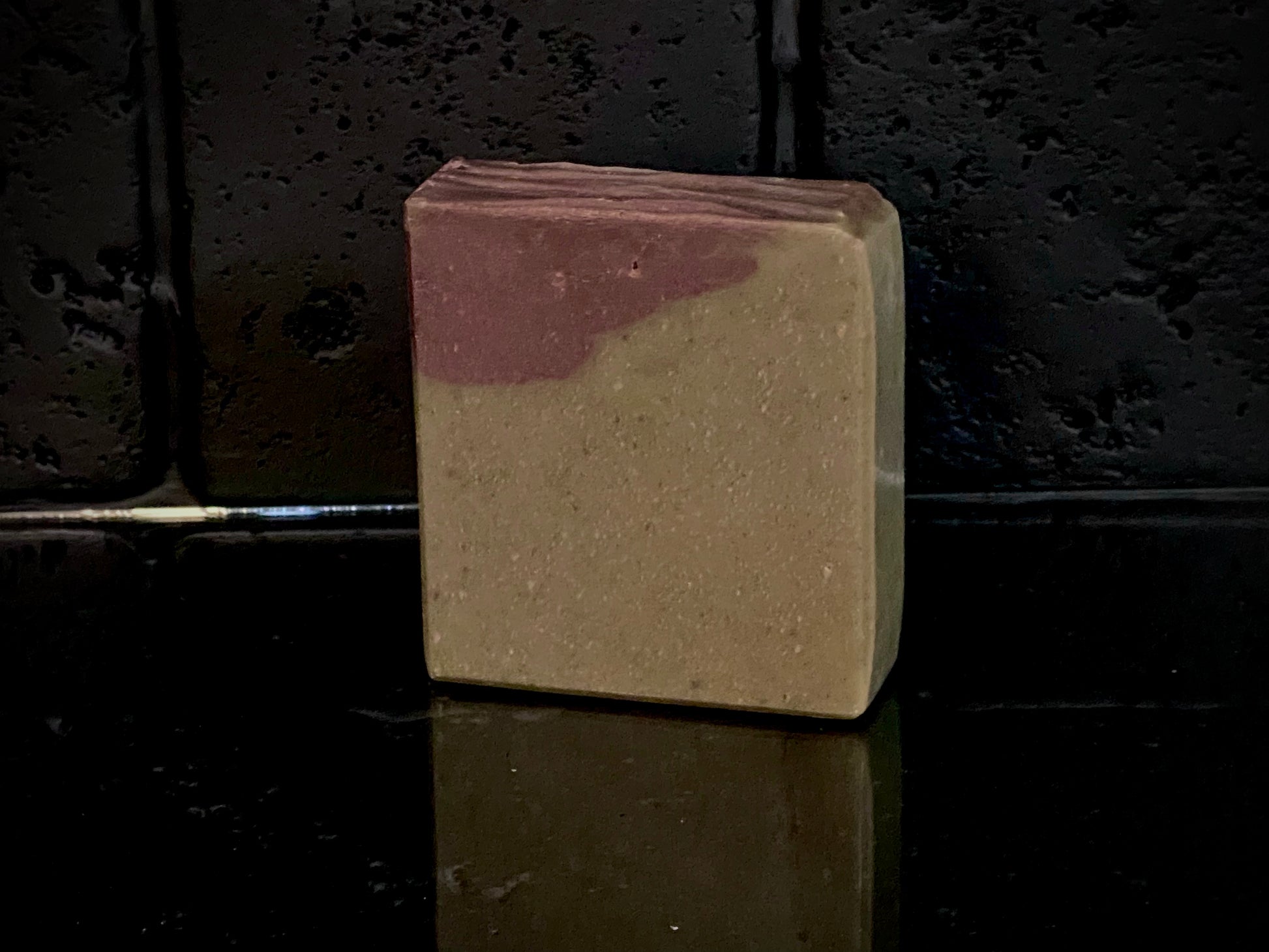 Wrapped in deep green from nettle powder and grounded with a rich layer of purple clay, this bar feels like twilight settled into your skin. The scent whispers of spice and woods—hinting at crisp cinnamon, subtle patchouli depth, and a clean cedarwood trail—without shouting. It’s quietly confident, just a little mysterious, and perfect for when you want your soap to evoke something rich and layered, not overdone.